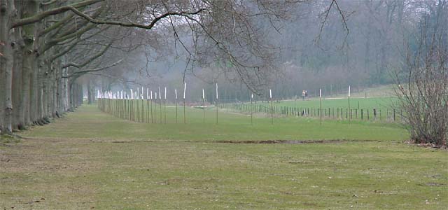 parallel to and follows a tree lined lane which leads to the Groeneveld Castle
